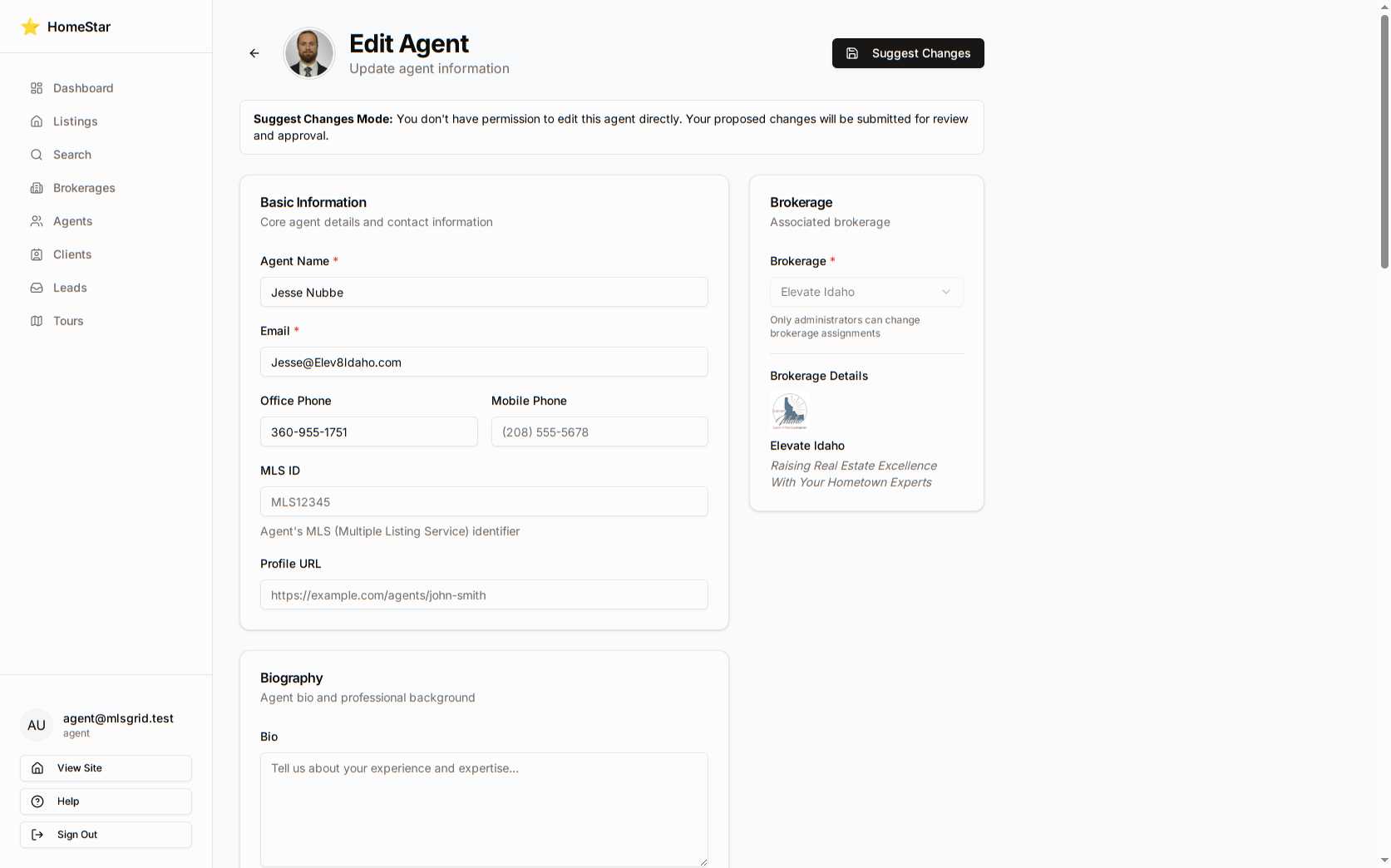 Suggest mode screenshot: Broker editing brokerage settings